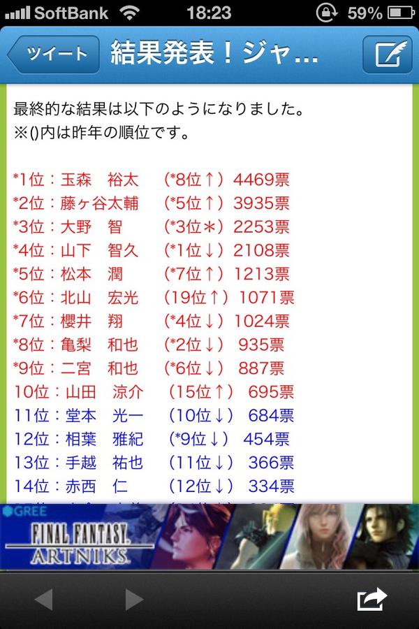 サチ On Twitter 速報 ジャニーズタレント人気投票2012年結果 1