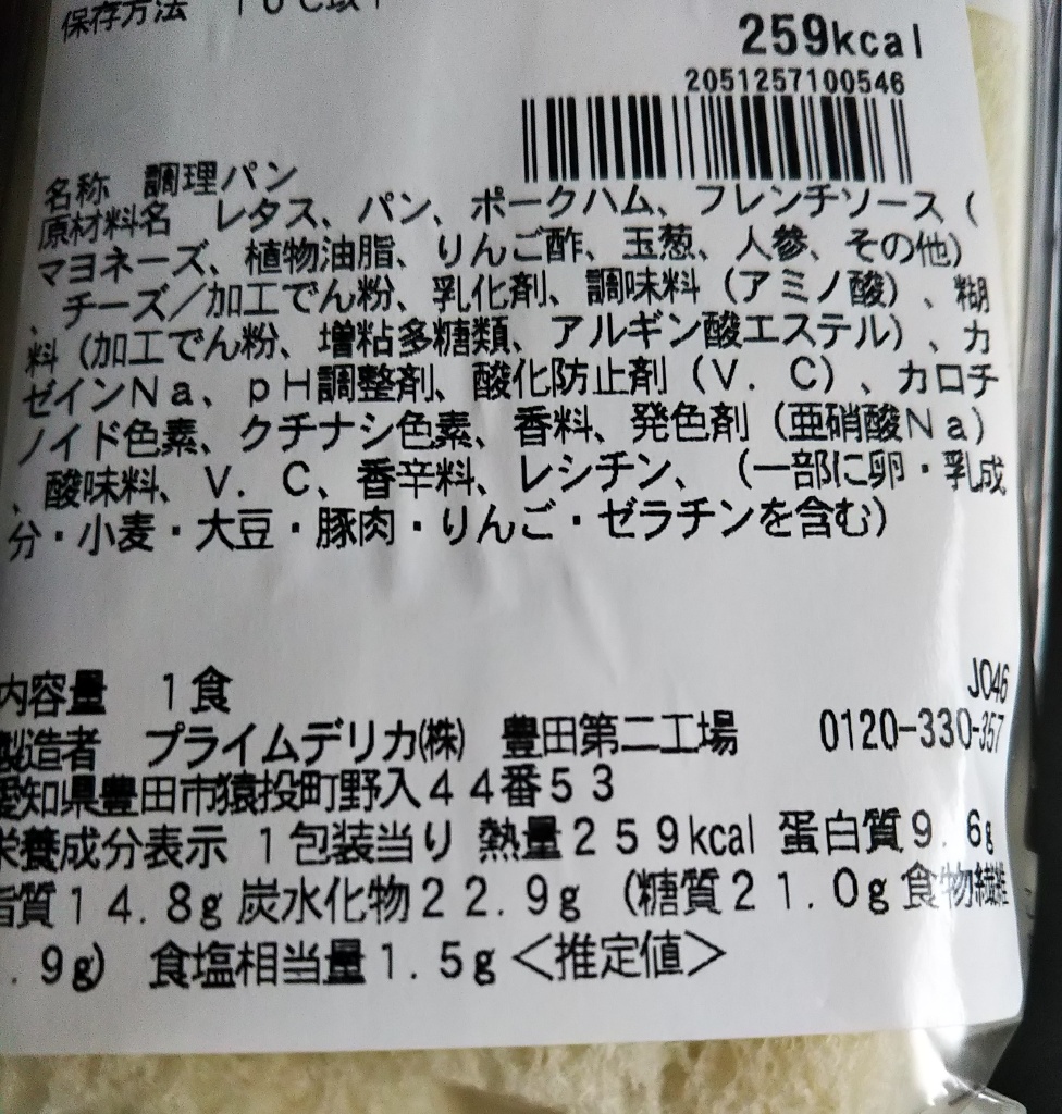 たっぷりハムとたまごのサンドのカロリー 糖質は