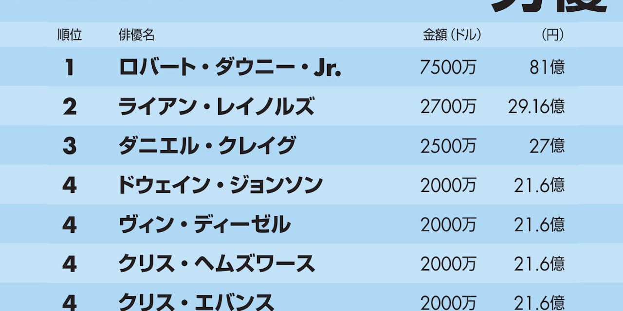 ハリウッド俳優のギャラ アベンジャーズ勢が上位占拠 エンタメ